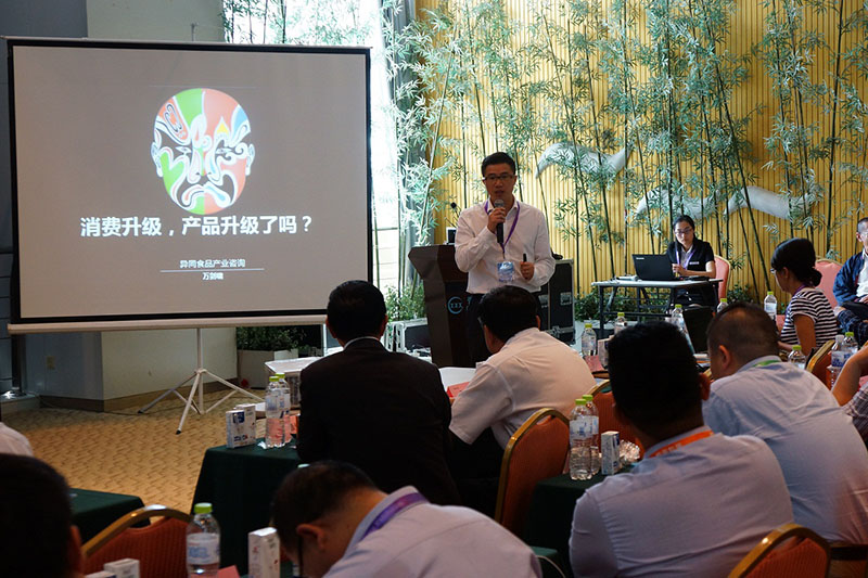 異同食品產(chǎn)業(yè)咨詢有限公司總經(jīng)理萬劍嘯分析了“消費升級,產(chǎn)品升級了嗎”。他生動地先以中國2015年的電影票房排行為例,來看未來消費市場的變化。未來的天下是年輕人的天下,年輕人對炫酷及神秘的事物、對具有創(chuàng)造性和顛覆性產(chǎn)品、對時尚和文化元素有需求,說明只有新的、顛覆性的產(chǎn)品才能抓住年輕人的心,只有產(chǎn)品與時俱進(jìn)才是創(chuàng)新,只有產(chǎn)品有含義、有文化、有溝通才是這個營銷時代的特征。在這種情況下,產(chǎn)品升級必須具備以下特點,即可溝通性、網(wǎng)絡(luò)化、國際范、社交化和時尚感。以后生產(chǎn)企業(yè)和品牌的概念會逐漸弱化,而一些小企業(yè),只要做出符合時代的產(chǎn)品,通過產(chǎn)品力的提升,貼合時代的升級和變遷,同樣也會成功。