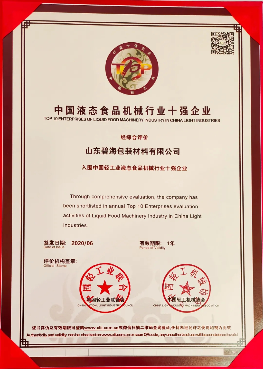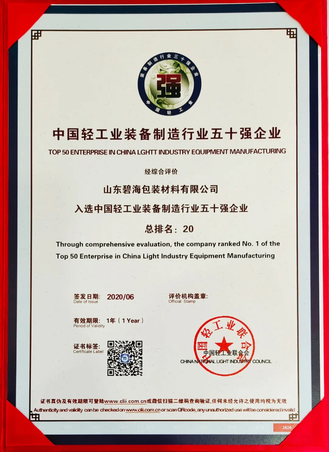 熱烈祝賀碧海包裝榮登中國輕工業(yè)裝備制造行業(yè)五十強、 液體食品機械行業(yè)十強榜單,榮獲CBB杯價值創(chuàng)造獎
